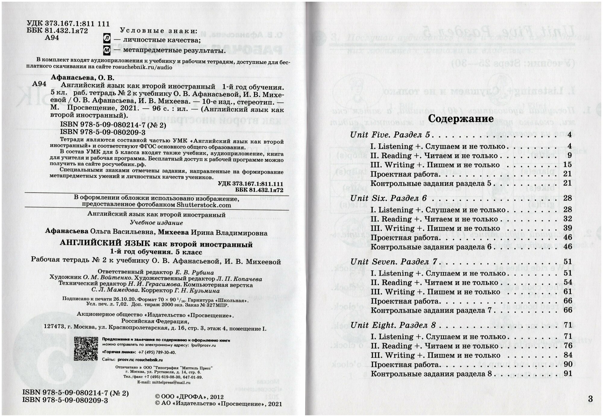 Английский язык как второй иностранный Первый год обучения 5 класс Рабочая тетрадь 2 к учебнику О В Афанасьевой И В Михеевой (Афанасьева Ольга Васильевна); Дрофа, 2021