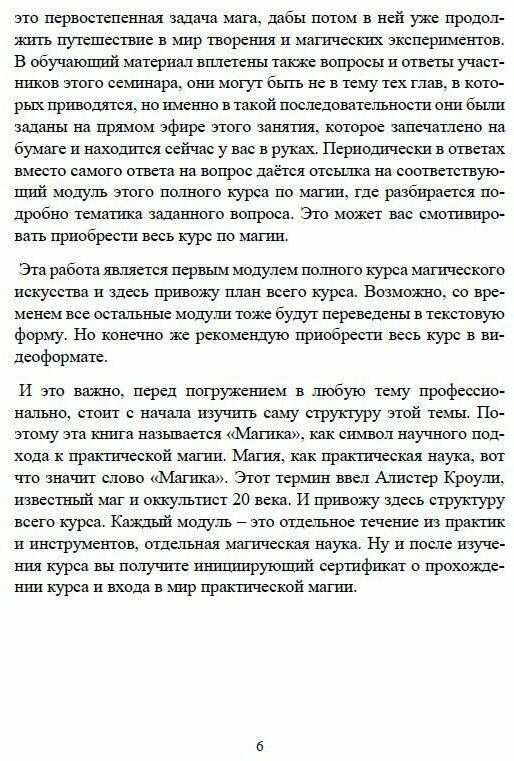 С помощью этого руководства вы начнёте освоение ядра магической практики, а также узнаете и получите техники магического мышления, влияния на реальность активным видением, раскрытия третьего глаза, мысленного влияния, формирования намерения. Получите алгоритм магии, простые магические обряды и начнете делать первые шаги, запуская в реализацию свои намерения (желания). Данная книга - это переведенный в текст первый модуль обучающего курса "Практическая Магия. Полный курс обучения".