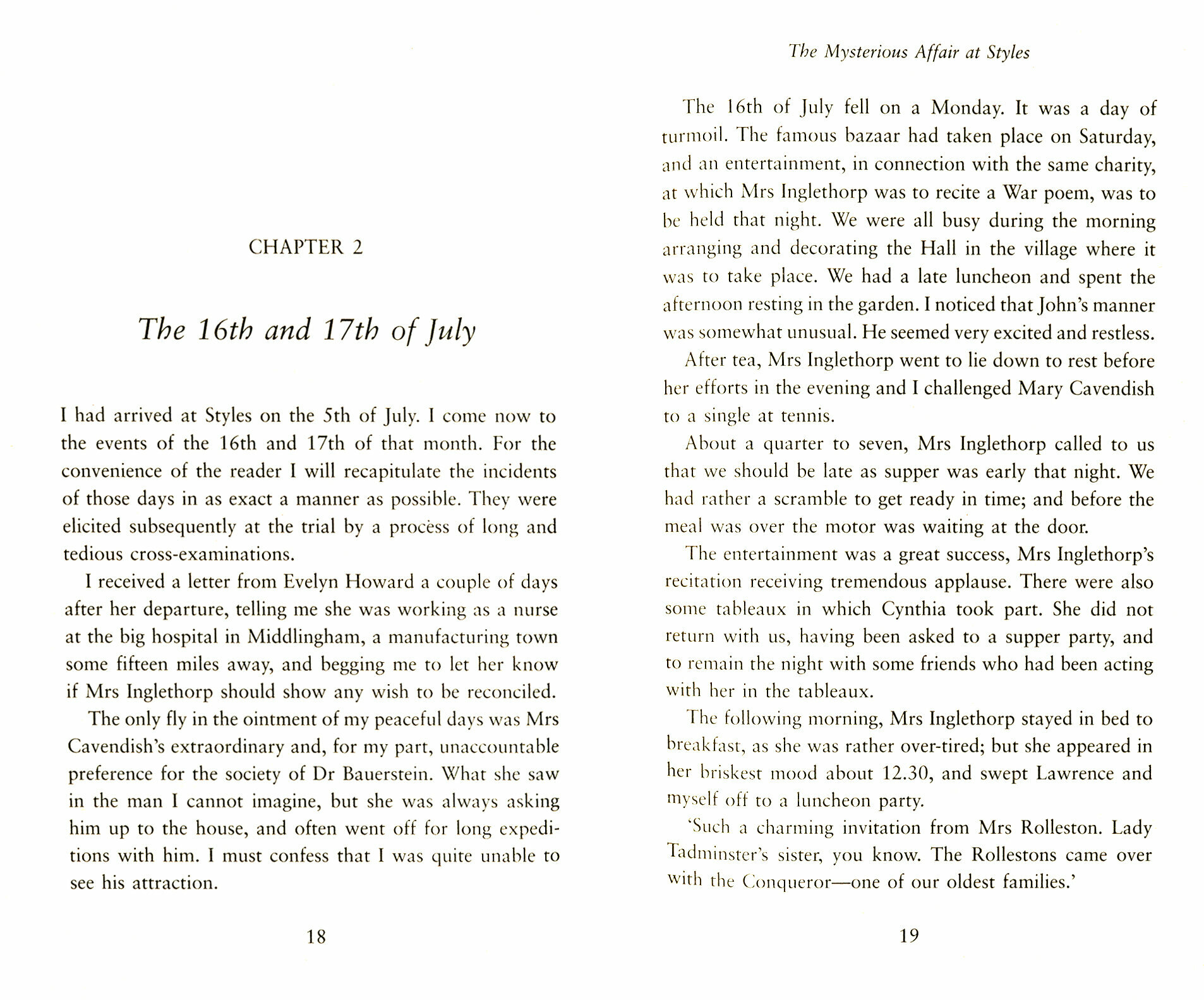 Captain Arthur Hastings is invited to the rolling country estate of Styles to recuperate from injuries sustained at the Front.