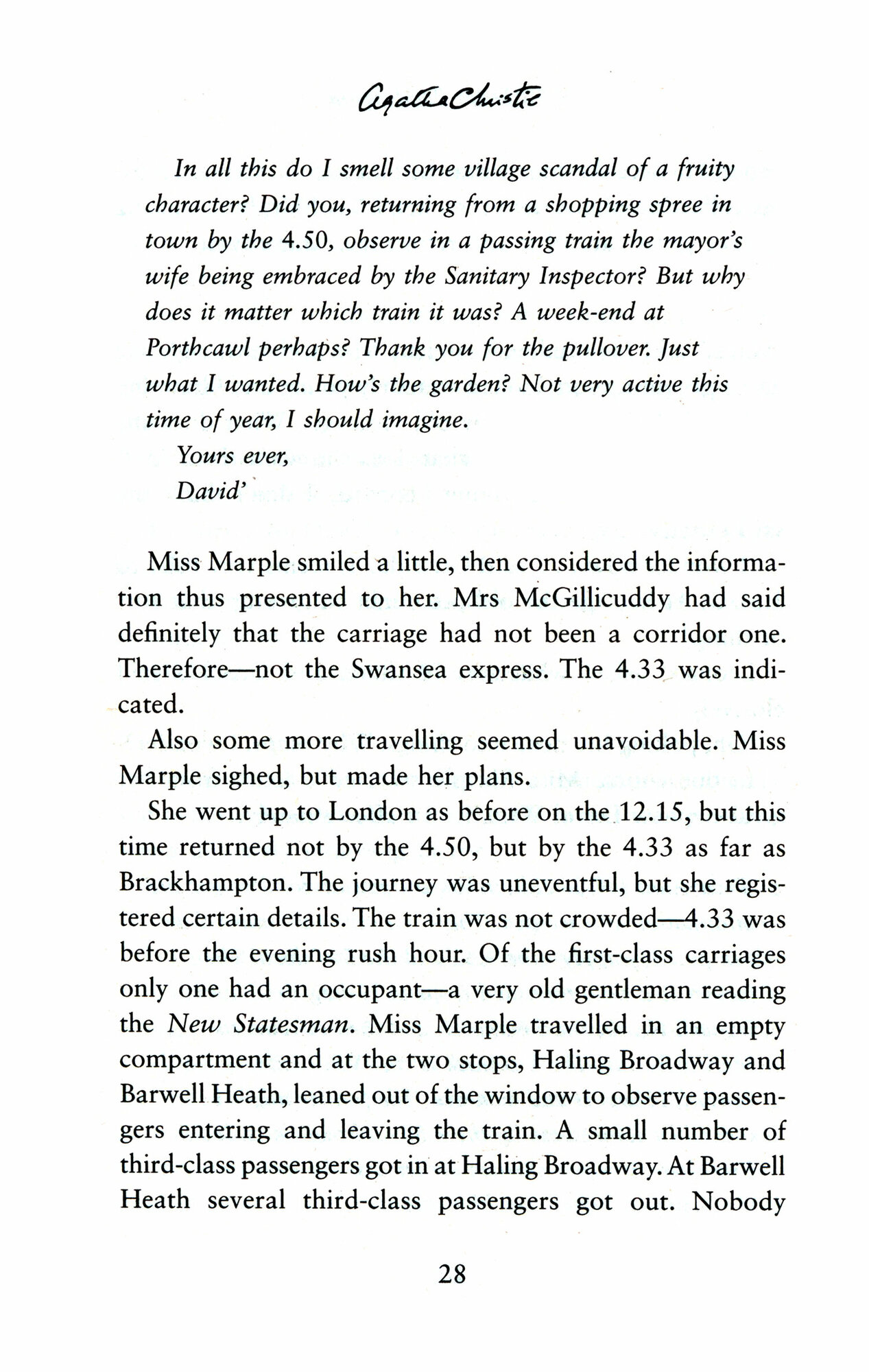 But who, apart from Jane Marple, would take her story seriously? After all, there were no suspects, no other witnesses... and no corpse.
