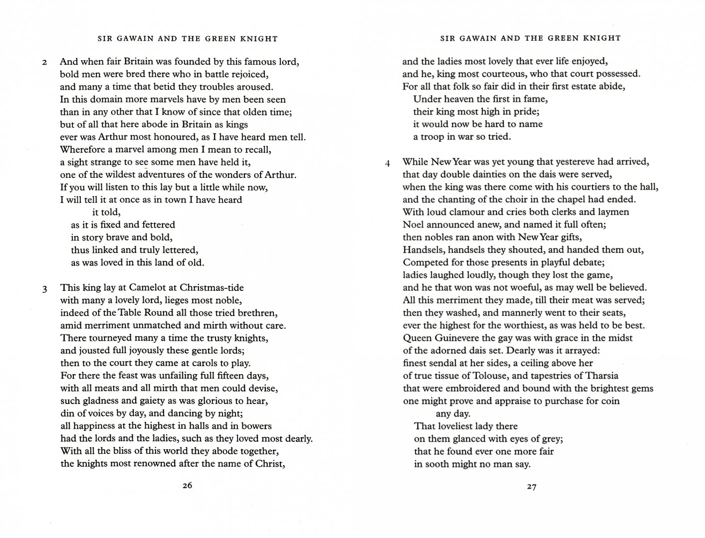 Sir Gawain and the Green Knight and Pearl are two poems by an unknown author written in about 1400. Sir Gawain is a romance, a fairy-tale for adults, full of life and colour; but it is also much more than this, being at the same time a powerful moral tale which examines religious and social values.