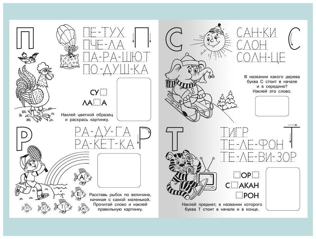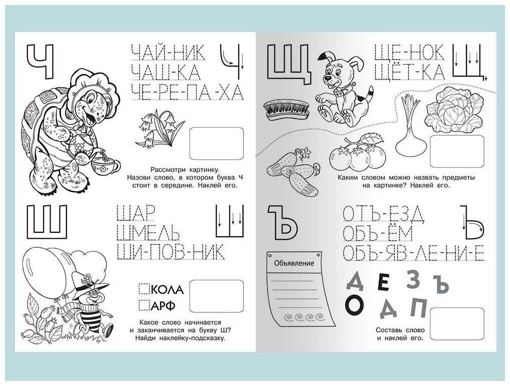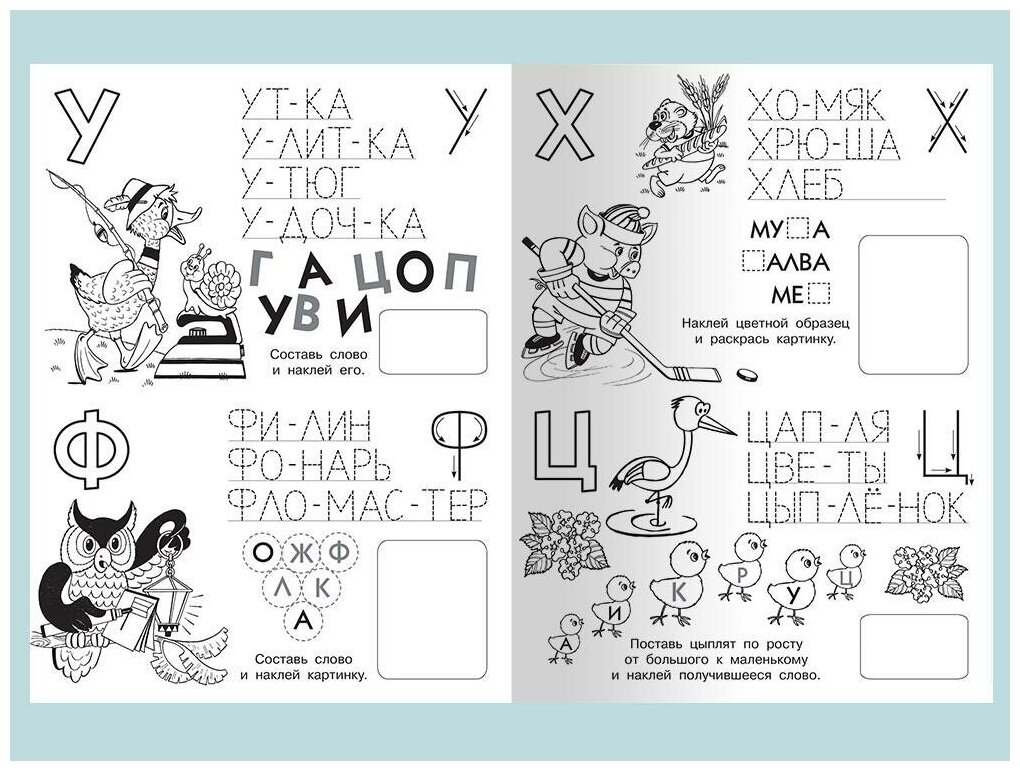 Пропись-раскраска с наклейками предназначена для выполнения упражнений, которые помогут вашему ребенку подготовиться к школе. Раскрашивание картинок будет способствовать развитию необходимых графических навыков, которые имеют большое значение при освоении письма.