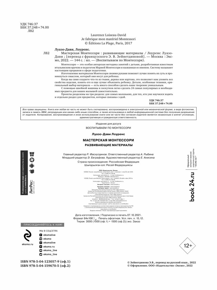 Мастерская МОНТЕССОРИ. Развивающие материалы. 24 проекта (Луазо-Дави Лоуренс); ООО "Издательство "Эксмо", 2022