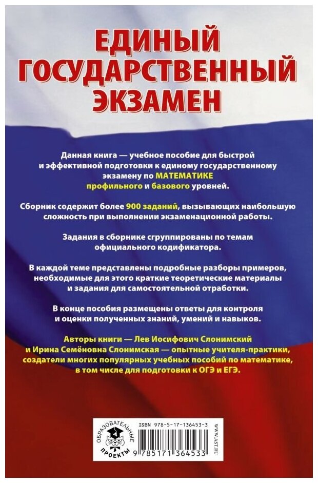 ЕГЭ. Математика. Самые сложные задания единого государственного экзамена. (Слонимский Лев Иосифович, Слонимская Ирина Семеновна); ИЗДАТЕЛЬСТВО "АСТ", 2022
