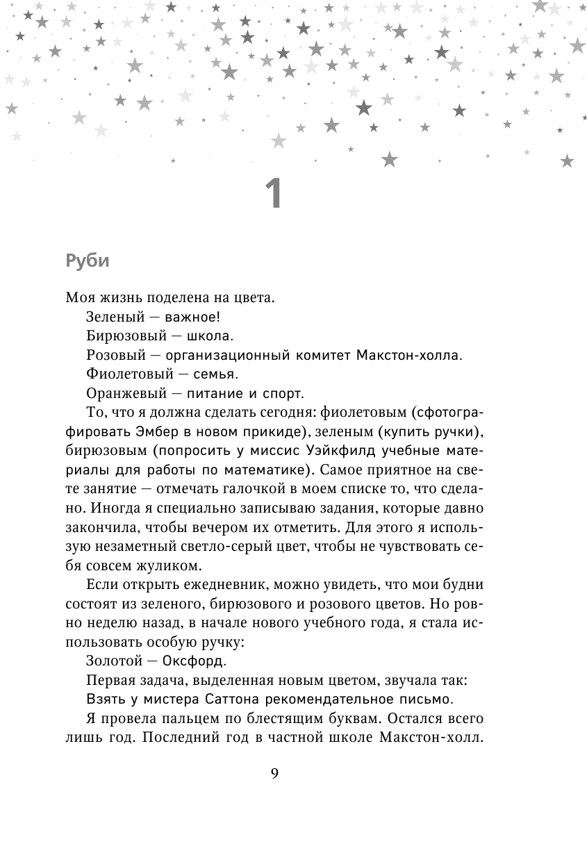 Вся школьная жизнь Руби подчинена одной цели - поступлению в Оксфорд. Для этого в 15 лет она с помощью стипендии перевелась из обычной государственной школы в Макстон-холл, ученики которого имеют наиболее высокие шансы на поступление. На момент начала истории она проучилась в Макстон-холле уже два года, руководит организационным комитетом и виртуозно избегает любого лишнего внимания. Однажды Руби приходит на встречу с учителем истории для получения рекомендательного письма в Оксфорд и обнаруживает, что этот самый учитель спит с одной из учениц – Лидией Бофорт. На этом ее спокойная жизнь в Макстон-Холле и заканчивается. Лидия Бофорт в панике от возможного разоблачения просит о помощи своего брата-близнеца Джеймса, который и есть тот самый богатый привилегированный плохиш, капитан команды по лакроссу и будущий любовный интерес Руби. Джеймс пытается купить молчание Руби деньгами и натурой, получает жесткий отлуп, срывает организованную Руби школьную вечеринку и получает от директора наказание – запрет на лакросс и обязанность присоединиться к организационному комитету школы, которым Руби и руководит. Оба героя категорически против, но кто их спрашивал)) Так и начинается их взаимодействие и путь к влюбленности.