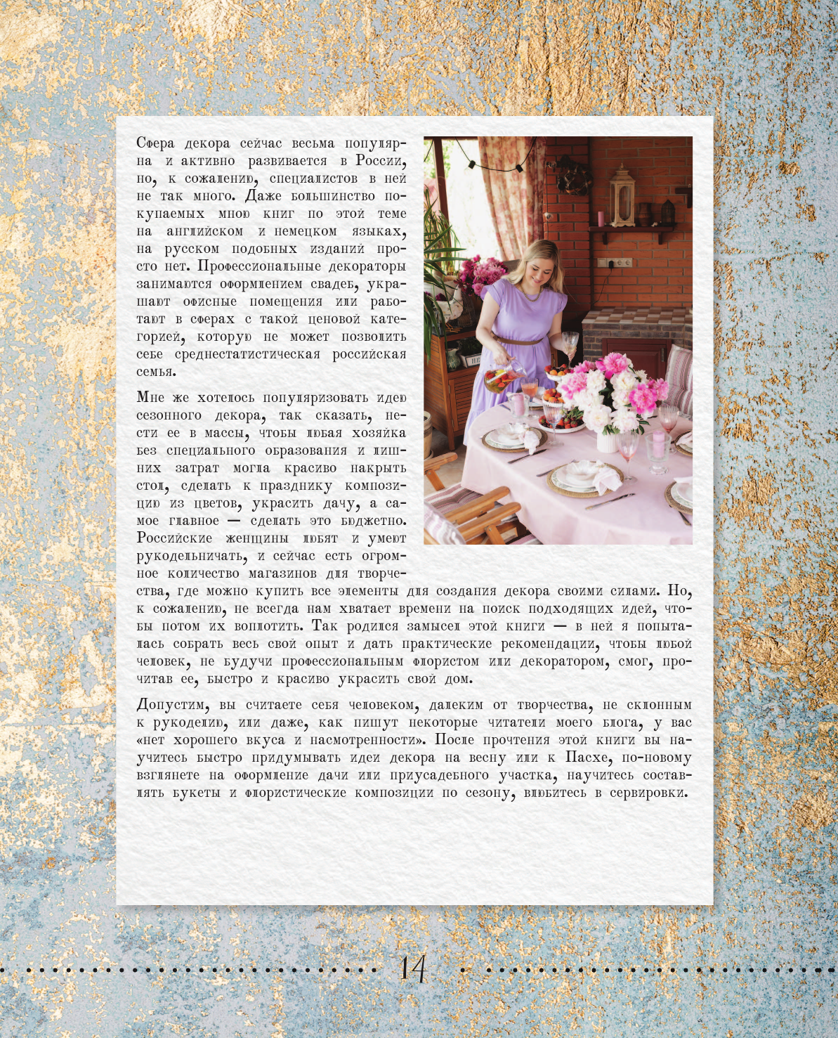 Если вы хотите серьезно заняться домашним декором, то эта книга - кладезь информации для вас. Автор рассказывает, как сервировка или украшение дома цветами поможет сделать ваше гнездышко обителью гармонии и уюта. Само по себе оформление книги - это дизайнерский восторг. В целом, эта книга для женщин, которые хотят украсить свою жизнь, осуществить свои мечты по украшению домашнего пространства. Чудесно!