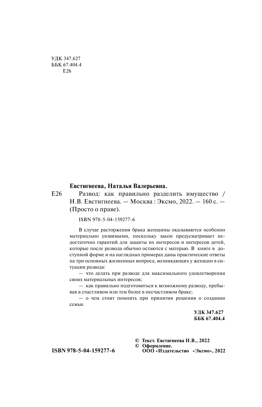 Развод: как правильно разделить имущество (Евстигнеева Наталья Валерьевна); ООО "Издательство "Эксмо", 2022