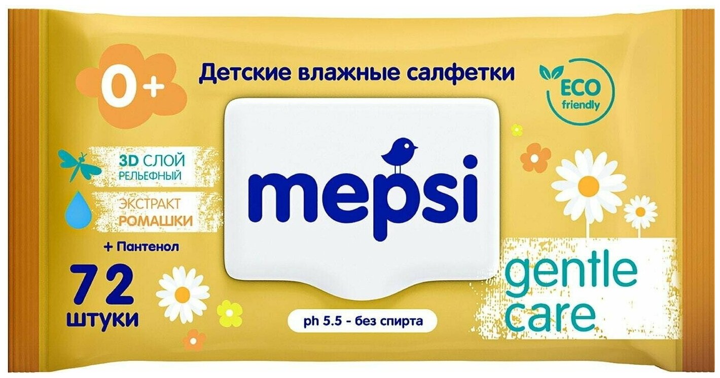 Салфетки влажные Mepsi Gentle Care Ромашка с клапаном детские 72шт