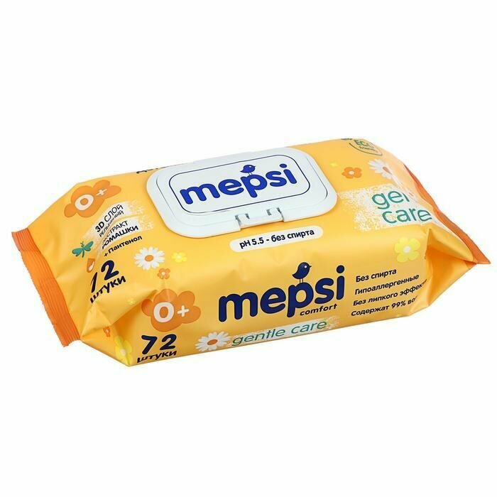 Сервис сравнения цен СкидкаГИД предлагает сравнить цены на товар «Салфетки влажные Mepsi Gentle Care Ромашка с клапаном детские 72шт»