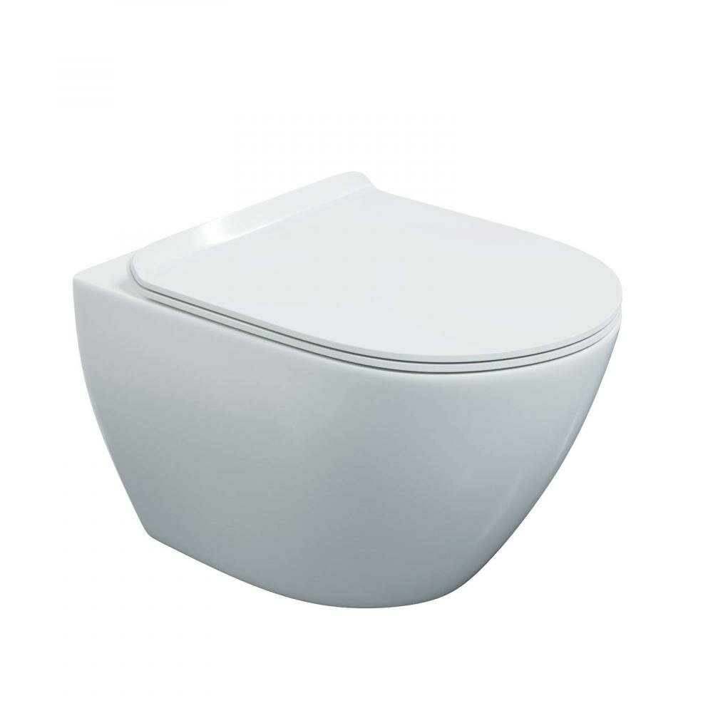 Безободковая система смыва. Антибактериальное покрытие. Экономия воды. Скрытый крепеж. Сиденье дюропласт Toma Slim SO: микролифт, быстросъем