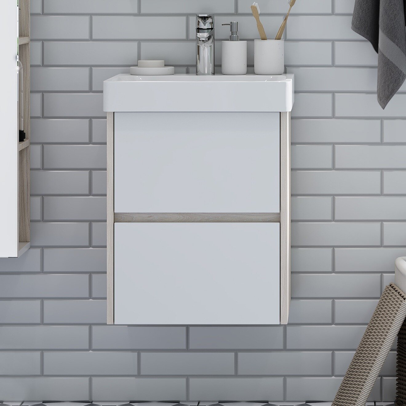 Тумба под раковину Акватон Сканди 45 1A251601SDB20 подвесная Белый Дуб верона