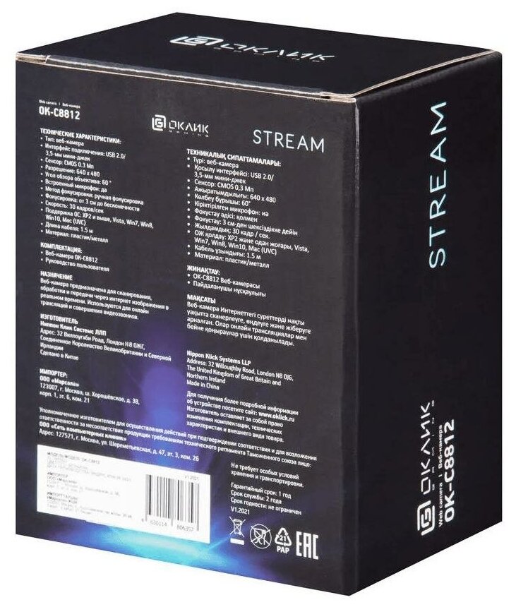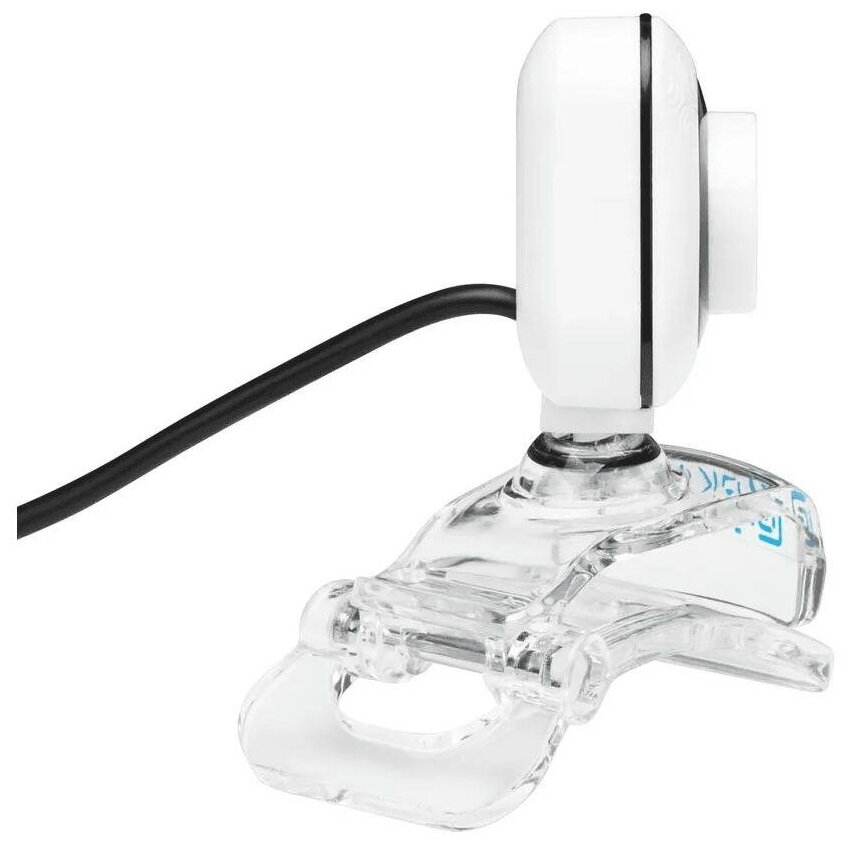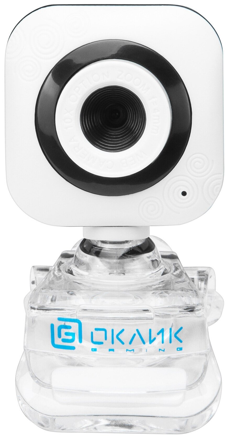 Веб-камера Oklick представлена в компактном белом корпусе с креплением для монитора и возможностью отдельной установки на столе. Благодаря микрофону передается качественный аудиосигнал. Проводной прибор подключается к ПК через несъемный кабель с разъемом USB 2.0. Устройство Oklick оснащено CMOS-матрицей на 0.3 Мп. Такие характеристики позволяют снимать видео с небольшим разрешением 640x480 dpi, чего вполне достаточно для удаленного общения. Также камера позволяет делать фото с разрешением 640x480 dpi.