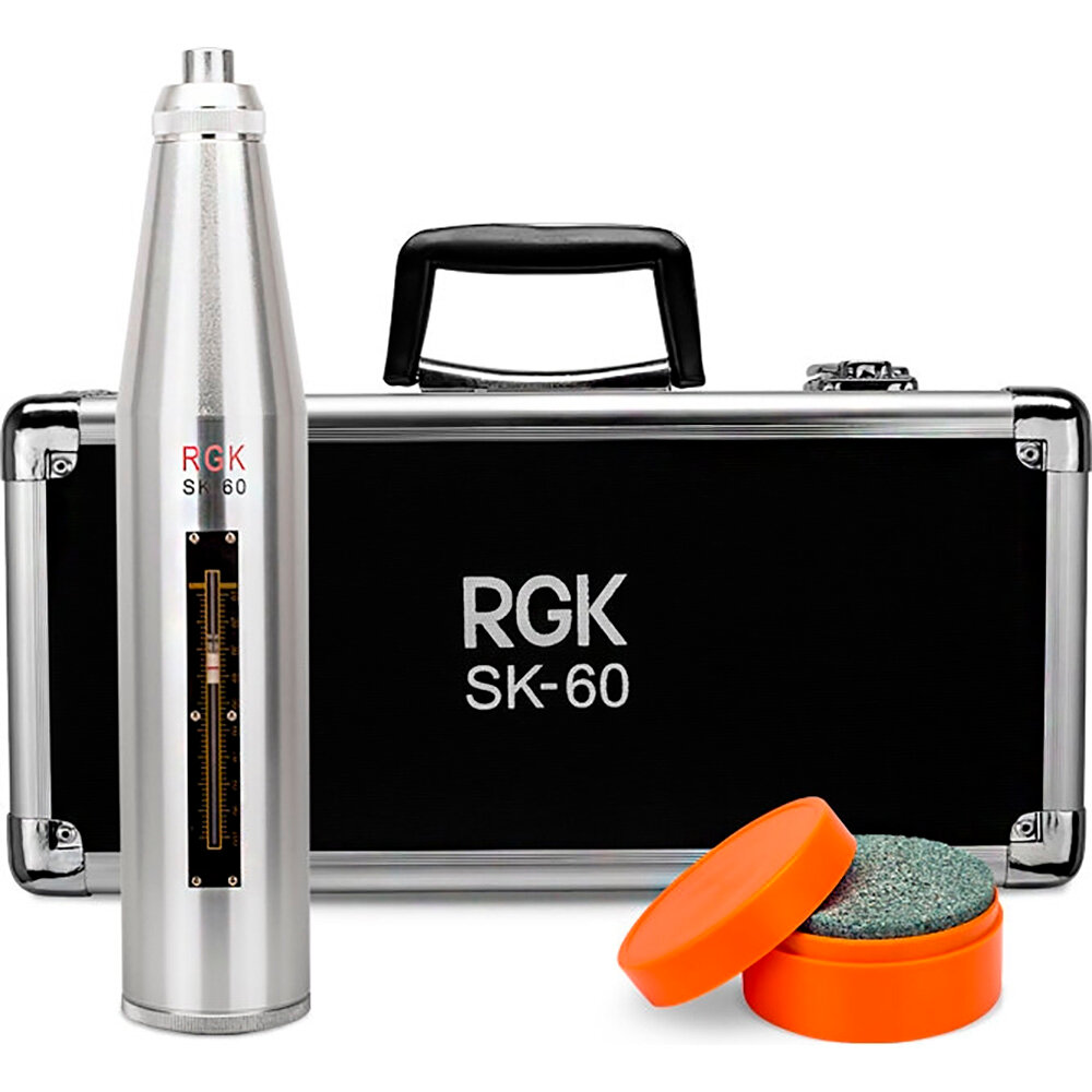 Склерометр RGK SK-60 с калибровкой – прибор неразрушающего контроля прочности твёрдых материалов в диапазоне 10-60 МПа. Прибор будет исключительно полезен для контроля качества бетонных сооружений, кирпичной или каменной кладки и др.объектов, как в спец.лаборатории, так и прямо на стройплощадке.