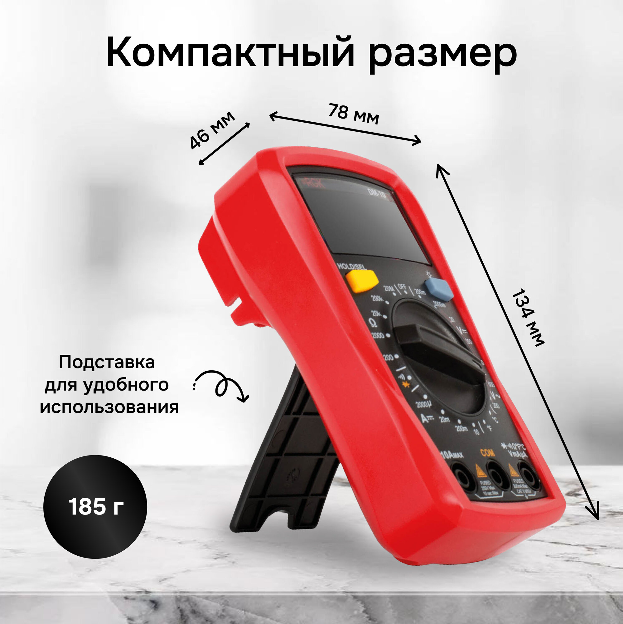 Цифровой мультиметр RGK DM-10 – это прибор для измерения различных параметров электросетей, диагностики оборудования, проверки диодов на работоспособность и прозвонки цепей. За счет компактных размеров и легкости освоения основных функций, эта модель - отличный выбор для домашнего использования.