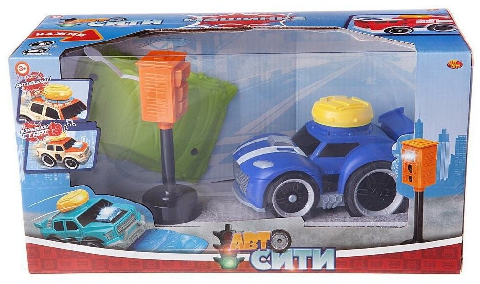 Игры с машинками не только любимое занятие для всех мальчишек, о и важный элемент их взросления. «Авто Сити» представляет машинку с большой желтой кнопкой запуска на крыше: ВКЛЮЧИ - НАЖМИ - СТАРТ! Нажми на кнопку и машинка отправится в свой путь, преодолевая препятствия. Контролируй порядок на дороге, используй камеру контроля над движением для фиксации нарушений.