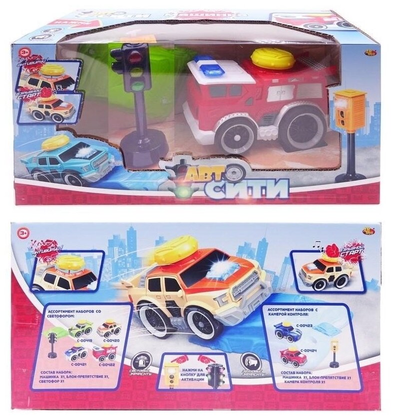 Игры с машинками не только любимое занятие для всех мальчишек, о и важный элемент их взросления. «Авто Сити» представляет машинку с большой желтой кнопкой запуска на крыше: ВКЛЮЧИ - НАЖМИ - СТАРТ! Нажми на кнопку и машинка отправится в свой путь, преодолевая препятствия. Используй светофор для контроля над движением на дороге.
