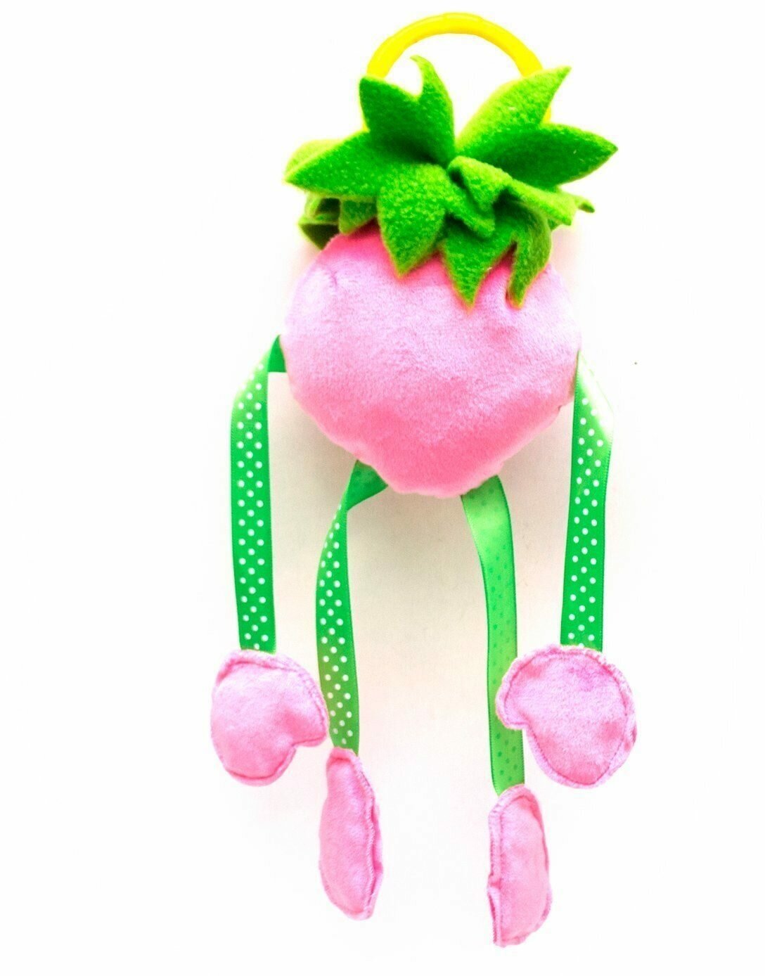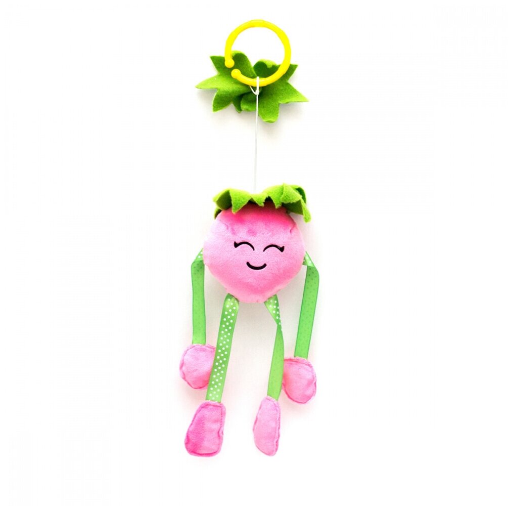 Игрушка-подвеска ягодка с вибрирующим механизмом мягкая и забавная. Малыш с удовольствием будет дергать за ручки и ножки игрушки, чтобы "заставить" мягкий фрукт танцевать под вибрирующий деликатный звук. Внутрь ладошек и ступней фрукта спрятан шуршащий материал. Он позабавит малыша новым звуком и тактильными ощущениями.