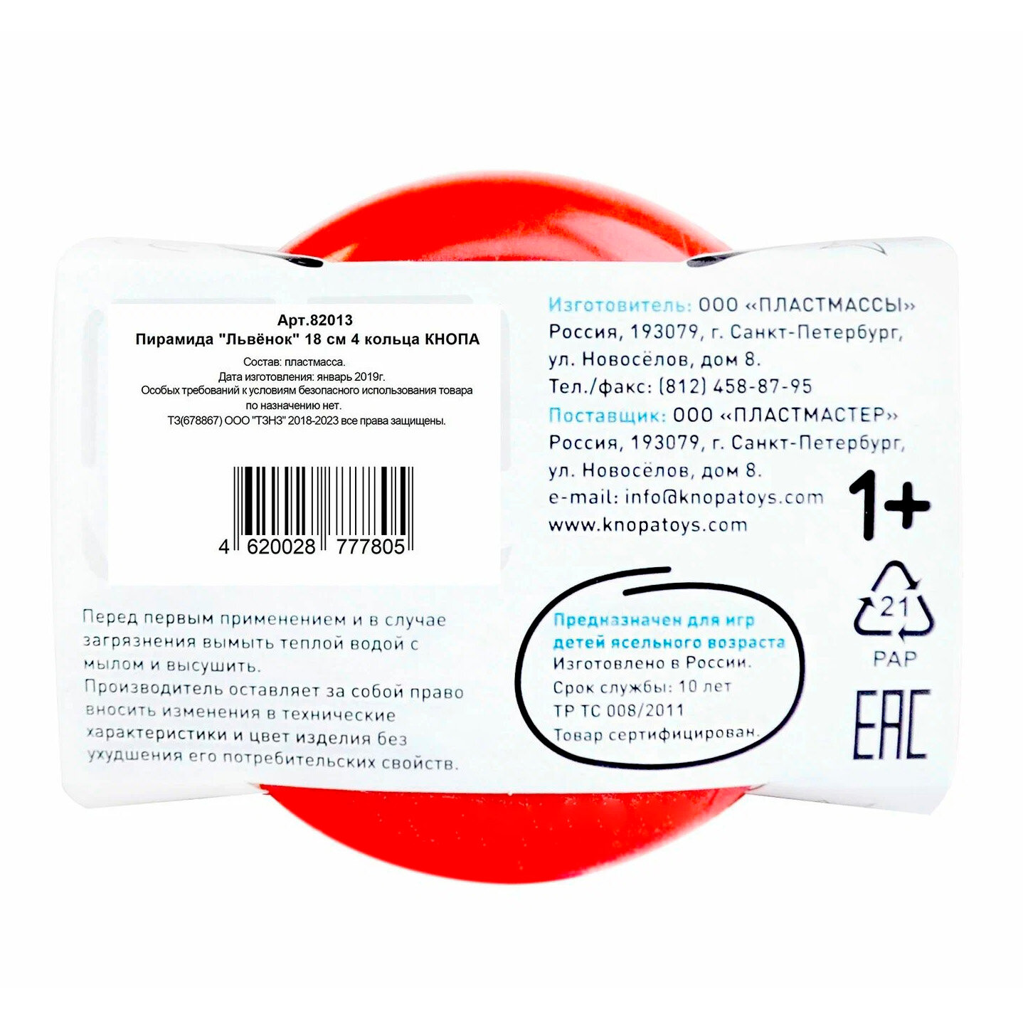 На сегодняшний день товар «Пирамида KNOPA "Львенок" 4 кольца 18см (П016-82013)» можно купить с кешбеком в 1 магазине: Яндекс.Маркет