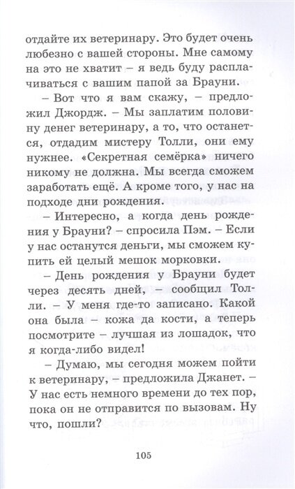 По сути, в данной истории нет никакого расследования и особой тайны. Просто ребята решают помочь старику Толли, работающему на ферме. Хотя сюжетная линия развивается довольно быстро, но мне все-таки не хватало детективной составляющей. Учитывая, что это заключительная книга серии, то весьма слабая история.