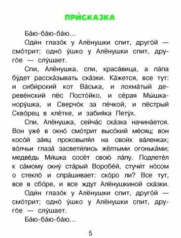 Что можно сказать про такую классику, как «Аленушкины сказки»? Очередная замечательная книга из этой серии с небольшим количеством черно-белых иллюстраций, большим шрифтом, ударениями и качественной бумагой. Да ещё и такой прекрасный контент. Мой ребёнок обожает эту серию.