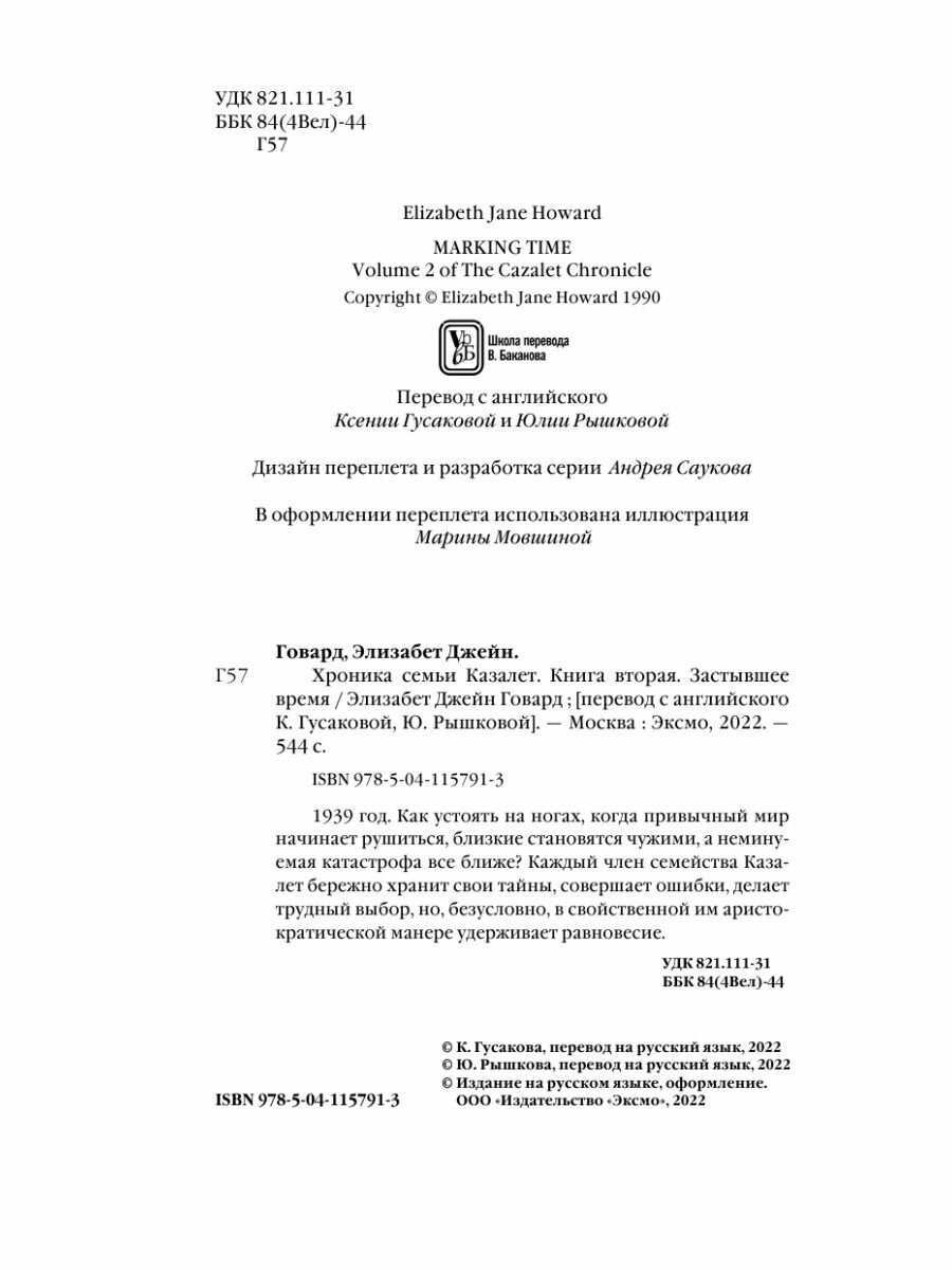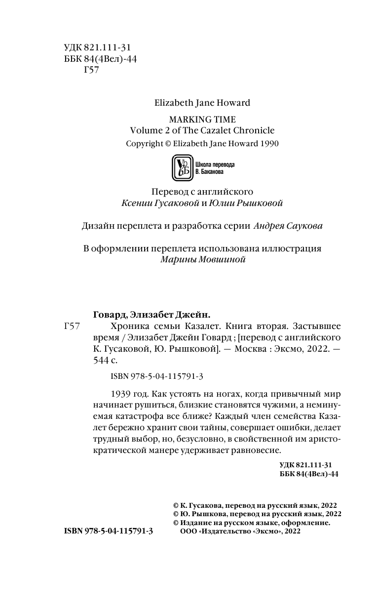 Книга: Застывшее время (Элизабет Джейн Говард); Эксмо, Редакция 1, 2021