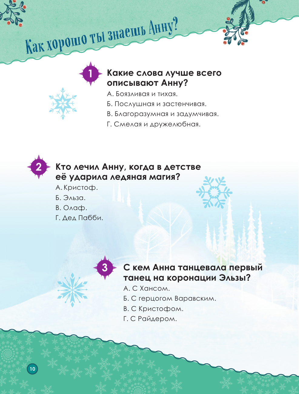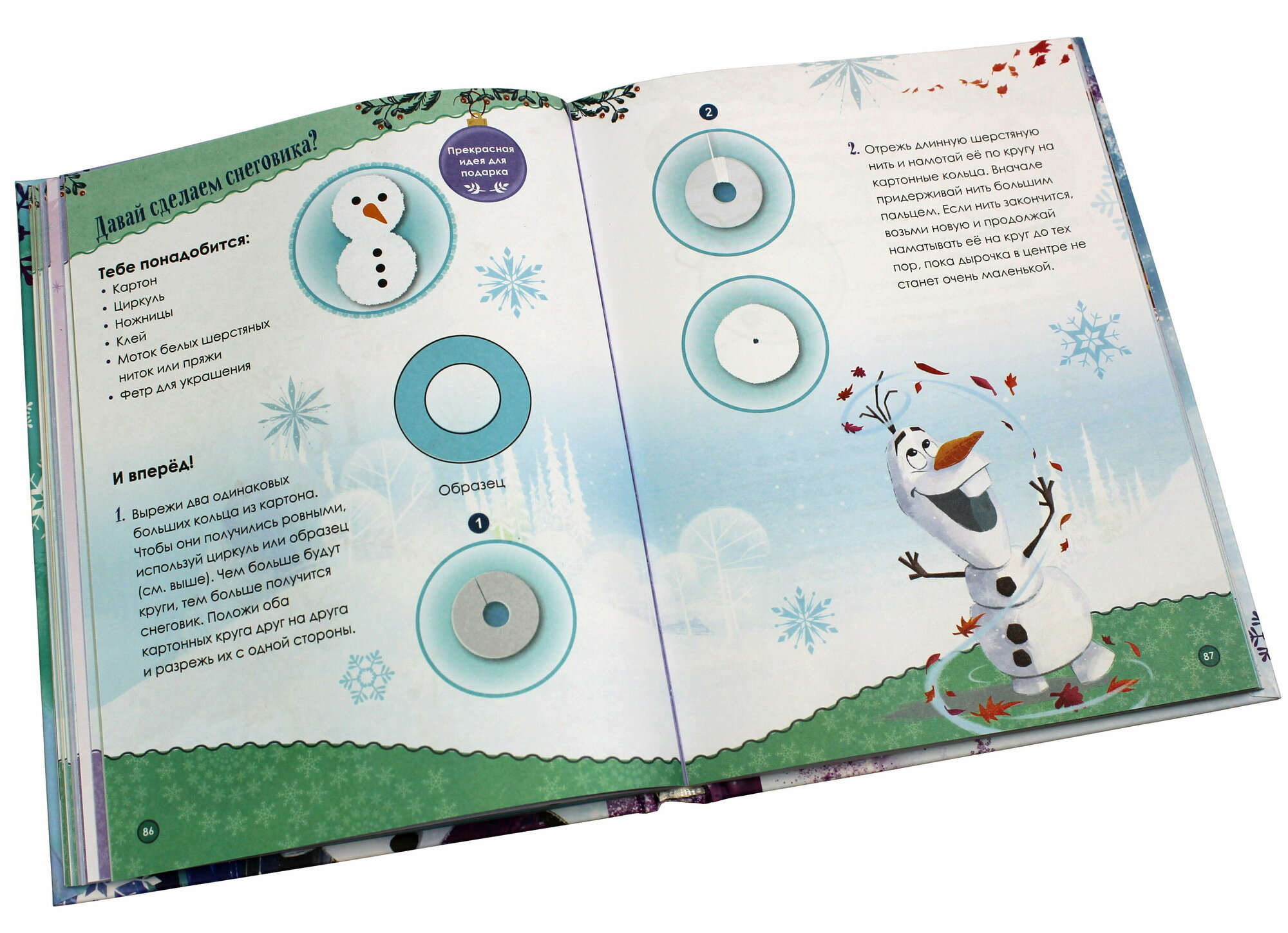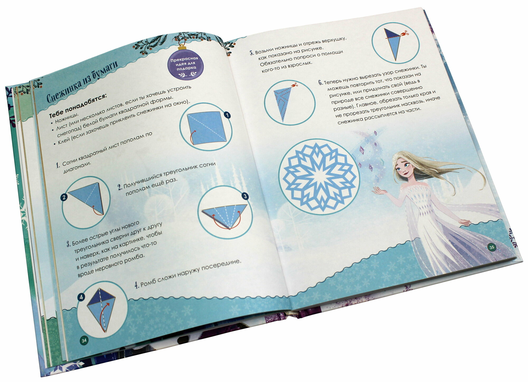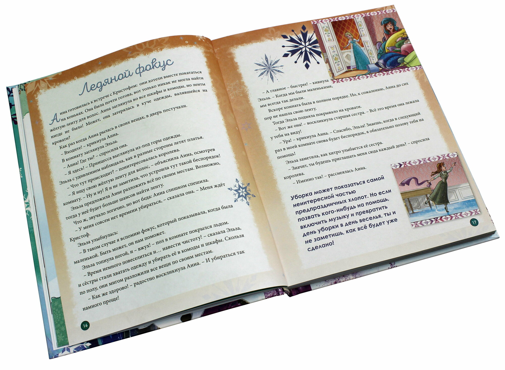 В ней вас ждёт маленькое приключение на каждый день декабря — от доброй истории о любимых героях мультфильма «Холодное сердце» до весёлых лёгких заданий, идей подарков и поделок и самых простых рецептов сладостей. Всего 15—20 минут в день, и ожидание Нового года станет не менее радостным и волшебным, чем сам праздник! И, вероятно, даже создаст новую семейную традицию.
