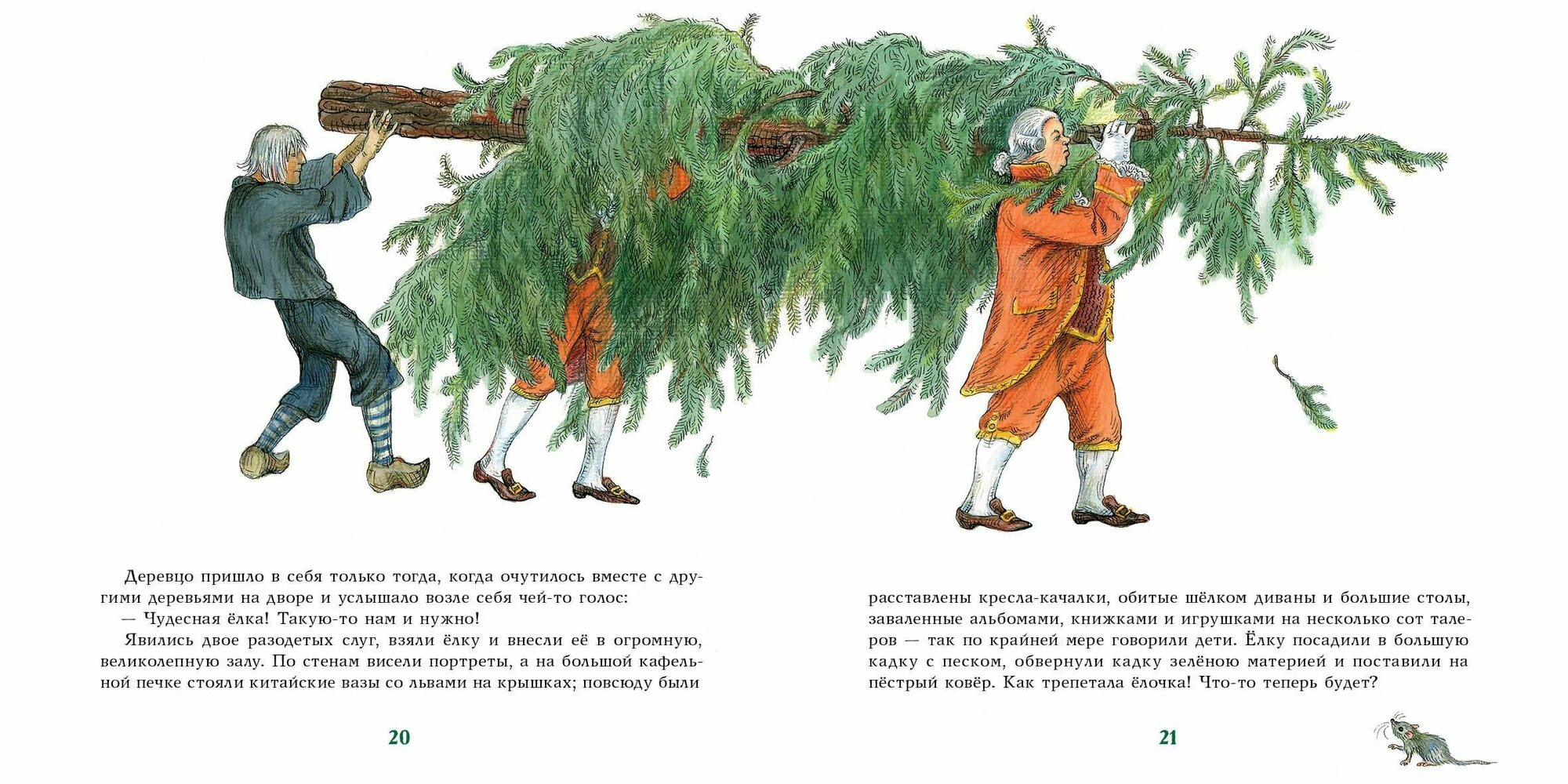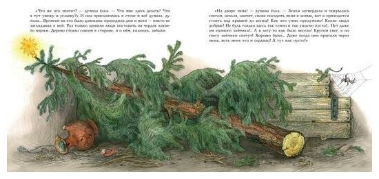 Можно подумать, что история о новогодней елке, но смысл произведения гораздо глубже. Возможно, поэтому с украшенной новогодней елкой всего одна картинка. Не могу сказать, что история совсем детская. Думаю, читатель любого возраста найдет что-то свое.