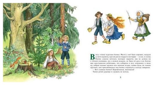 Иллюстраций много, в основном они занимают страницу или ее часть. Есть на часть разворота. Текст на развороте присутствует всегда. Шрифт удобный, страницы текстом не перегружены. Качество иллюстраций своеобразное. Цвет лежит полосами с небольшими пробелами или потертостями. Цвета не очень яркие. Но в любом случае иллюстрации достаточно красивые.
