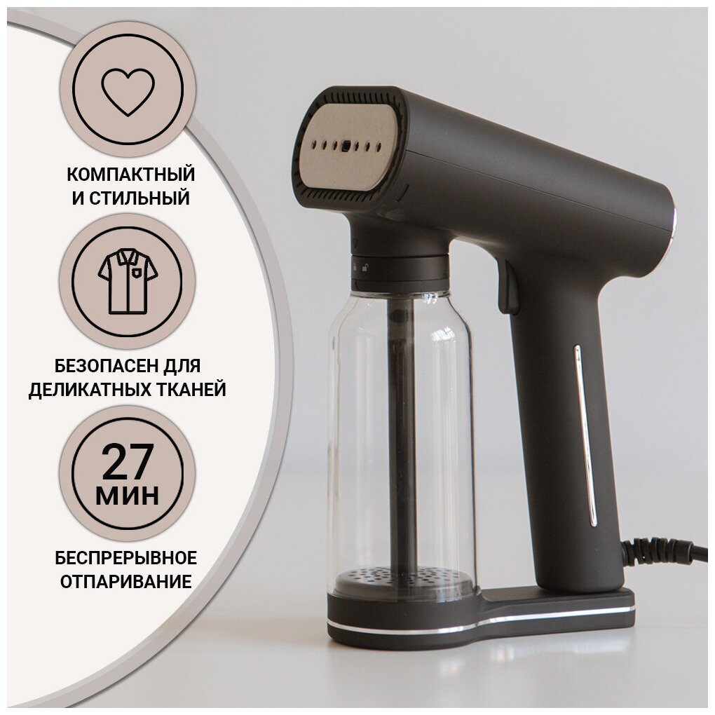 | Комплект поставки | 1. Ручка-отпариватель 2. Резервуар для воды на 400 мл 3. Мешочек для хранения 4.Крючок для развешивания вещей 5. Механизм для соединения собственного резервуара с ручкой-отпаривателем |