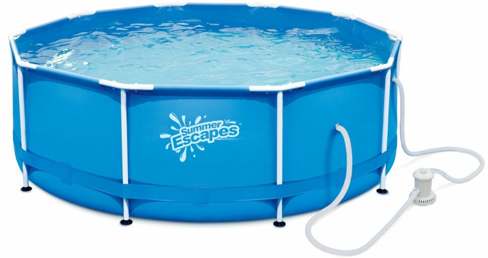 Бассейн Summer Escapes P20-1248-B 366х122 см 366х122 см Polygroup каркасный 366х122см, 10250л, фил.-насос 3000л/ч, лестница, тент, подст., наб.д/чис, скиммер (синий)