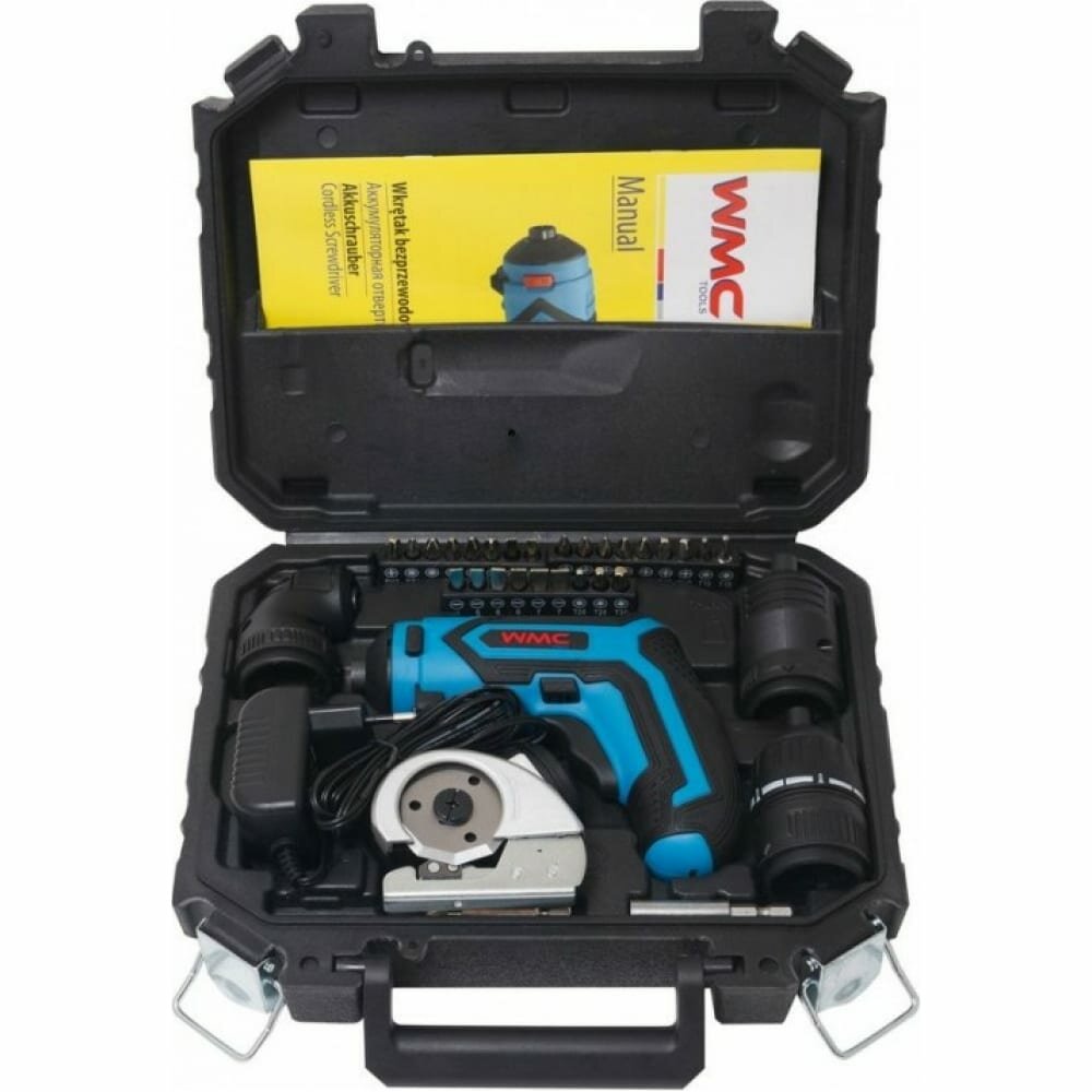 Шуруповерт аккумуляторный с набором бит и аксессуаров 36пр. в кейсе WMC Tools 48163 1036 (черно-синий)