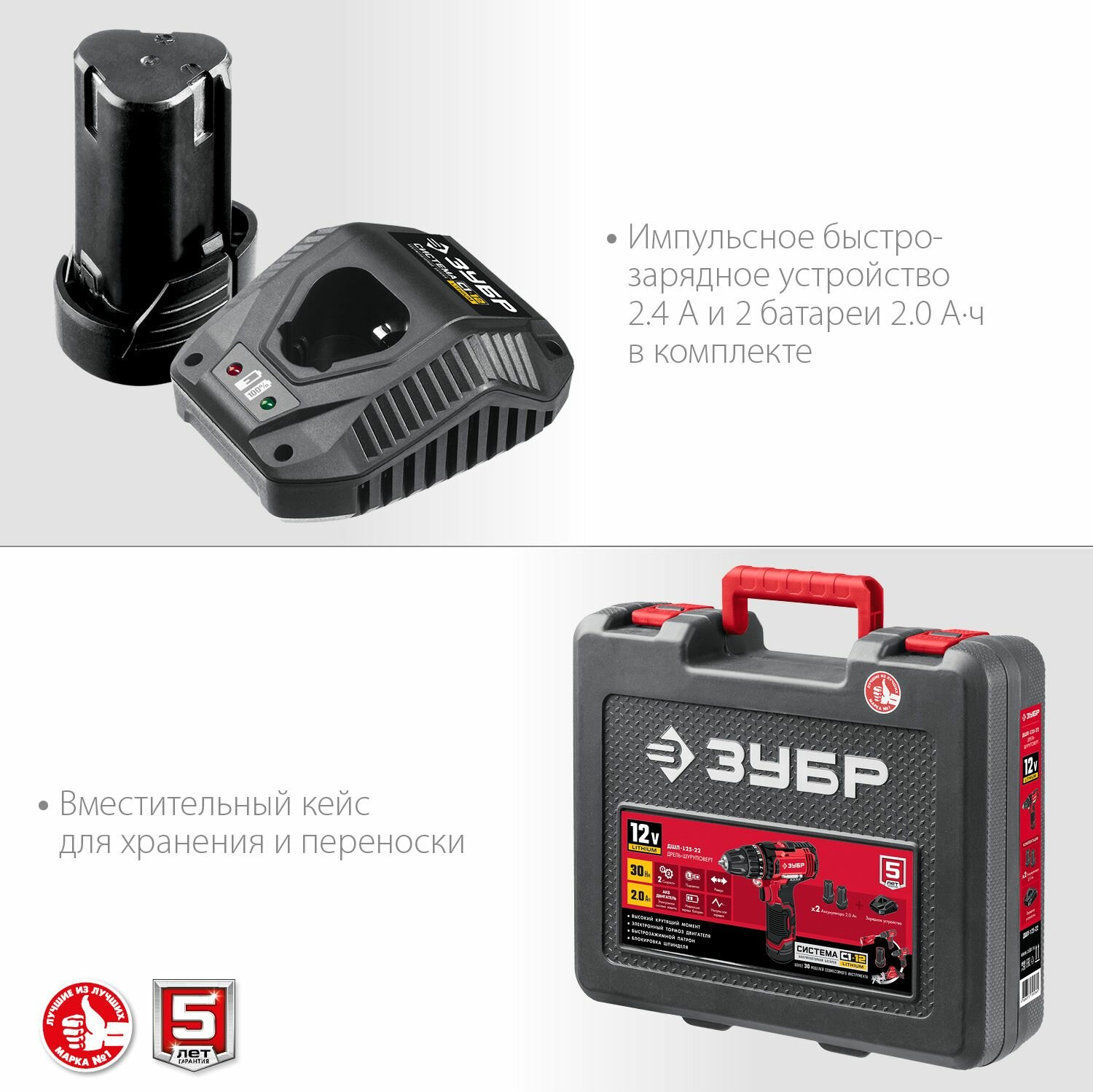 Аккумуляторная дрель-шуруповерт Зубр ДШЛ-125-21, ДШЛ-125-22