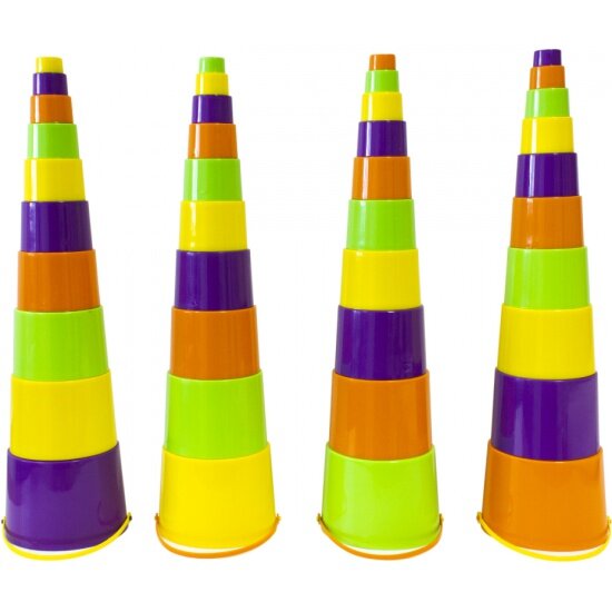 Пирамидка прекрасная развивающая игра для малышей. Ребёнку обязательно понравятся многочисленные формочки разных цветов, из которых можно выстроить башню, сложить одна в одну, они также прекрасно подойдут для купания и игры в песочнице.