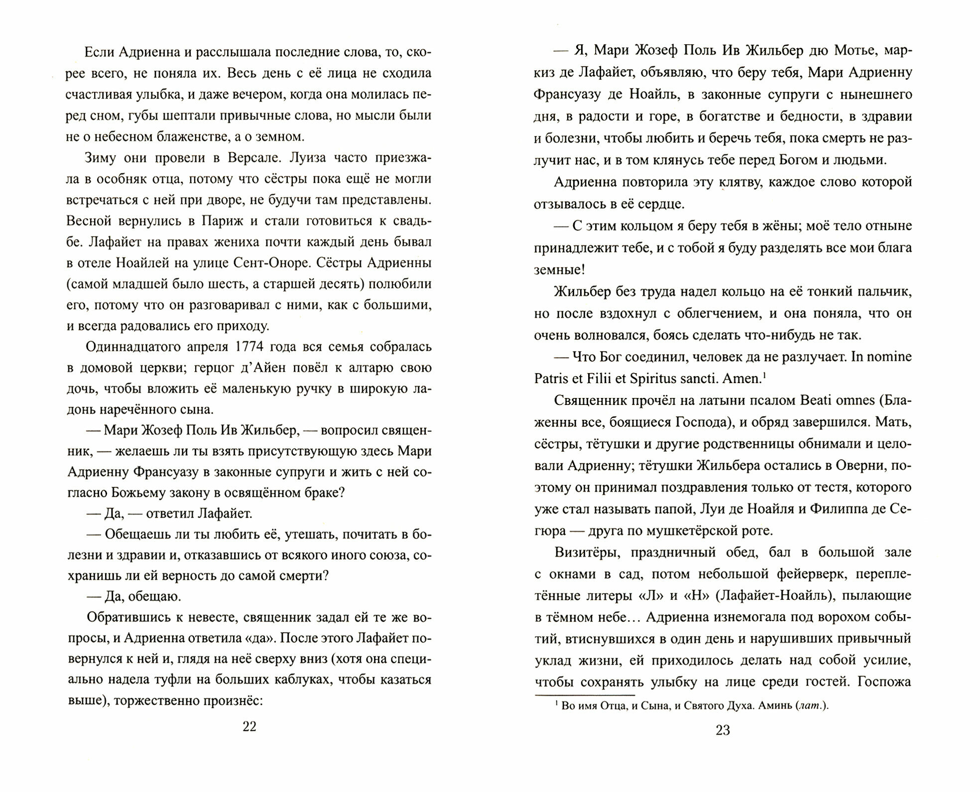 Юный и богатый сирота, маркиз де Лафайет - отличная партия; Адриенна де Ноайль - девушка из знатной семьи с большими связями при дворе. Их союз мог бы стать обычным браком по расчёту, если бы двух подростков не соединила чистая и нежная любовь. Зятю герцога д'Айена доступна блестящая военная или придворная карьера, но Лафайет хочет прославить своё имя сам. Он отправляется в Америку сражаться за независимость бывших английских колоний; Адриенна преданно ждёт его, томясь от неизвестности. Следует ли ей уехать к нему, подобно жёнам английских и немецких офицеров? Вместо этого она становится деятельной помощницей своего мужа, "доброй американкой" во Франции, доказывая его правоту, выполняя его поручения и воспитывая их детей. Страдания и смерть, предательство и благородство - пройдя через множество испытаний, они оба стали взрослыми за эти шесть лет.