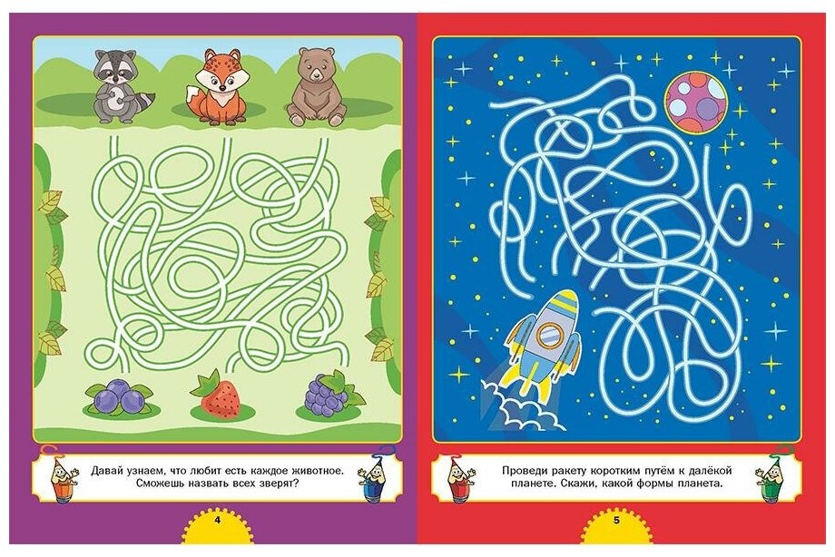 Перед вами книжка с яркими картинками, которые привлекут вашего ребёнка, и он, вероятно, впервые самостоятельно попутешествует по занимательным лабиринтам, развивая своё внимание и мелкую моторику. А отвечая на несложные вопросы, научится простому счёту, сможет различать цвета и формы предметов, расширит свой кругозор. Вместе со своим ребёнком вы весело и с пользой проведёте время!