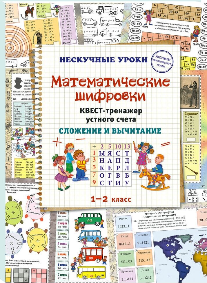 Идея проекта, как воплощена эта идея?Зачем эту книгу надо купить? Группа покупателей Без шифровки не обойдется ни один квест. Разгадать пословицу или имя героя сказки, имя великого математика или крылатое выражение, а заодно потренироваться в устном счете — такую возможность дает вам тетрадь «Математические шифровки. Квест-тренажер устного счета».