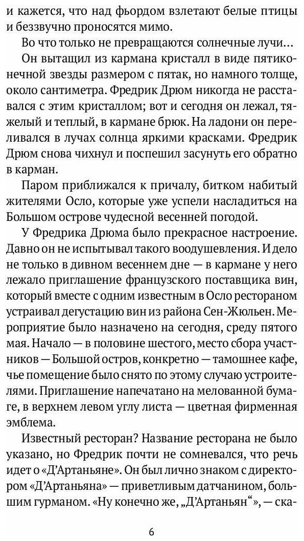 В остросюжетном романе "Гренландская кукла" (1987) гедонисту Фредрику Дрюму предстоит оказаться на тонущем пароме, а затем ему в руки попадет странная гренландская кукла - то ли оберег, то ли древний тотем, который к тому же как-то связан с хорошо сохранившимися останками доисторических людей, которые обнаружили в Норвегии.