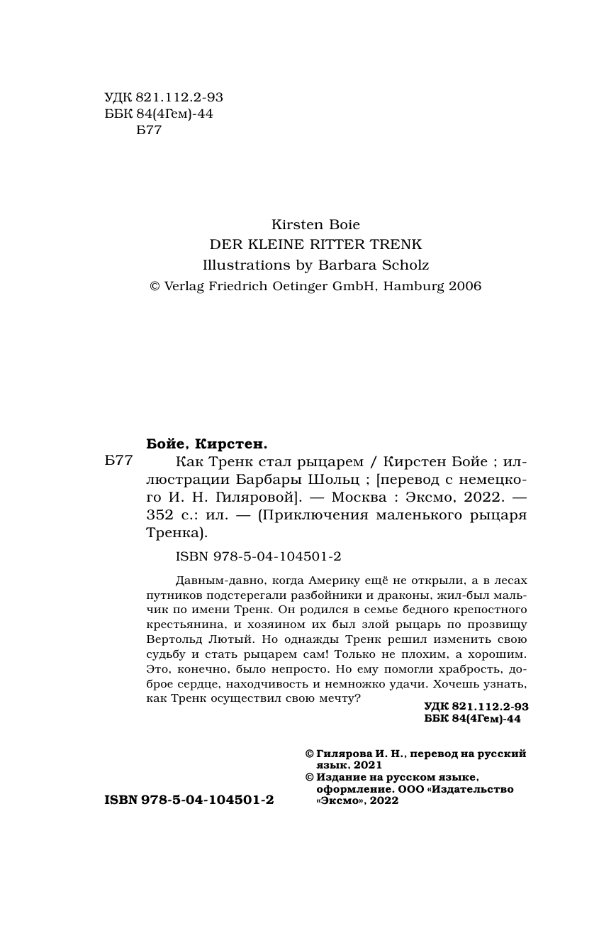 | Серия | Детск. Приключения маленького рыцаря Тренка |
