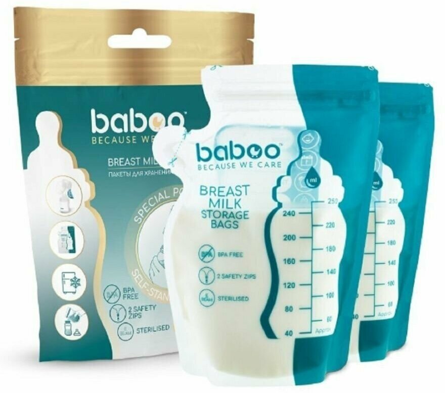 Товары для Здоровья / Мама и малыш / Для беременных и кормящихПакеты для хранения грудного молока BABOO предназначены для хранения грудного молока в холодильнике или для заморозки на долгий срок - прекрасная возможность создания банка грудного молока. Абсолютно стерильны, герметично закрываются и более практичны для длительного хранения, чем обычные бутылочки, занимают меньше места.Основные преимущества пакетов BABOO: Оптимальный объем 250 мл. Возможность нанесения маркировки, объема, даты и времени сцеживания. Удобная мерная шкала для контроля объема грудного молока. Плотный зип-замок с двойной застежкой, исключающий протекание. Широкое отверстие для удобства наполнения. Уникальный носик, облегчающий переливание молока в бутылочку для кормления. Двухслойный прочный материал, выдерживающий заморозку. Благодаря устойчивой конструкции дна, полный пакет легко хранить как горизонтально, так и вертикально. В пакетах для грудного молока BABOO можно хранить сцеженное молоко при следующих условиях: до 4 часов при комнатной температуре до 3 суток при в основном отделении холодильника (4 С) до 6 месяцев в морозильнике (-18 С). Не заполняйте пакет более, чем на , так как молоко увеличивается в объеме при заморозке. После размораживания молоко может храниться до 24 часов в холодильнике. Повторное замораживание грудного молока не рекомендуется.