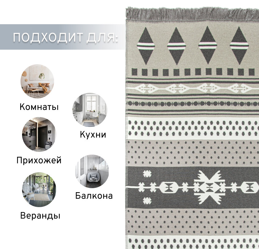 На сегодняшний день товар «Ковер безворсовый на пол турецкий Килим 100х200 серый Hoff» можно купить с кешбеком в 2 магазинах: Hoff, Яндекс.Маркет