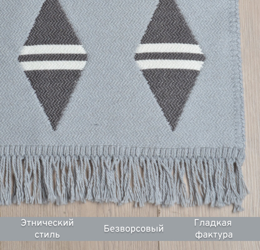 Ковер безворсовый на пол турецкий Килим 100х200 серый Hoff