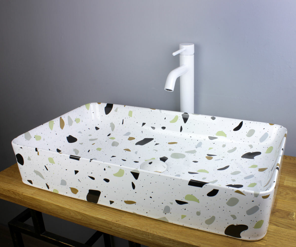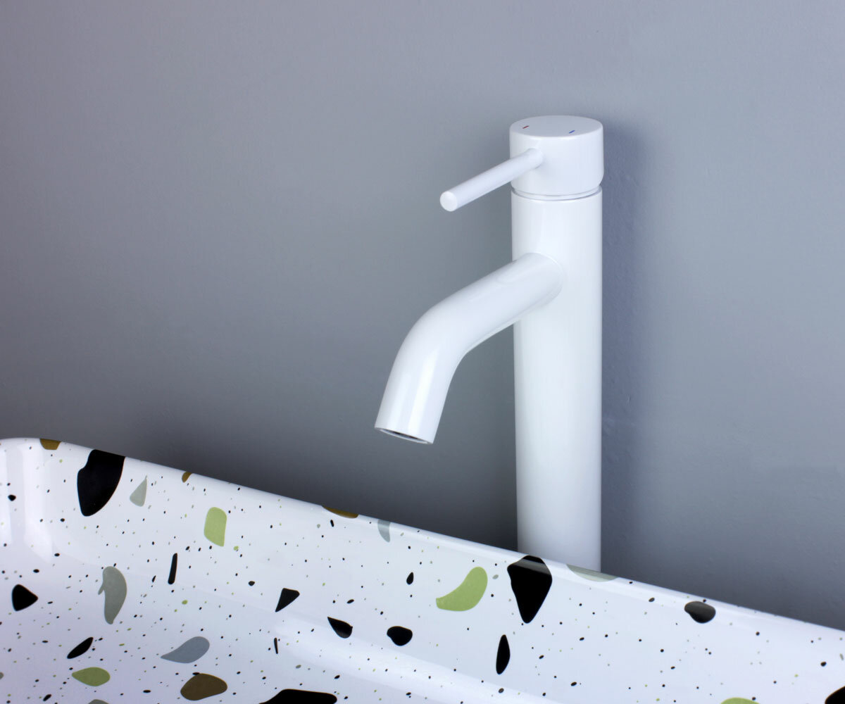 - Высокий смеситель на раковину белый глянцевый 1452W SCANDI Bronze de Luxe