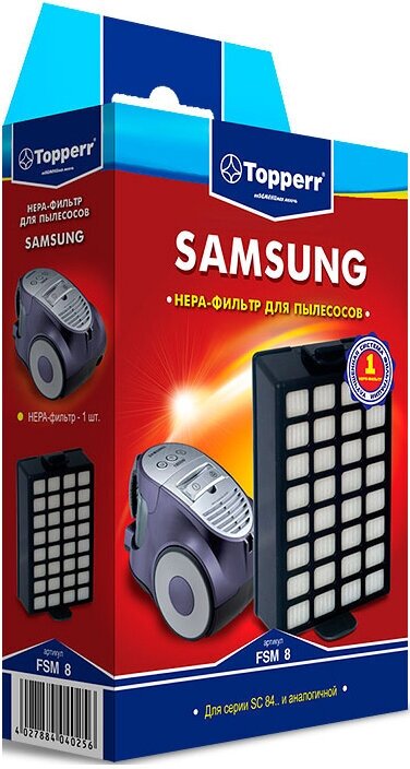 HEPA-фильтр для пылесосов SAMSUNG. Обладает высочайшей степенью фильтрации, задерживает 99,5% пыли. Благодаря специальным свойствам фильтрующего материала, фильтр улавливает мельчайшие частицы, позволяя очищать воздух от пыльцы, микроорганизмов, бактерий и пылевых клещей.