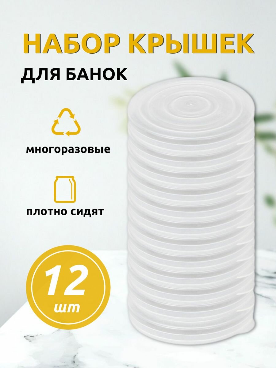 Изготавливаются из полиэтилена высокого давления. Предназначены для герметичного закрывания банок. Их легко использовать - для открытия не потребуется дополнительных вспомогательных предметов. При многократном использовании не теряют герметичность. В набор входит 12 крышек, упакованных в пакет с еврослотом для размещения на торговом оборудовании.