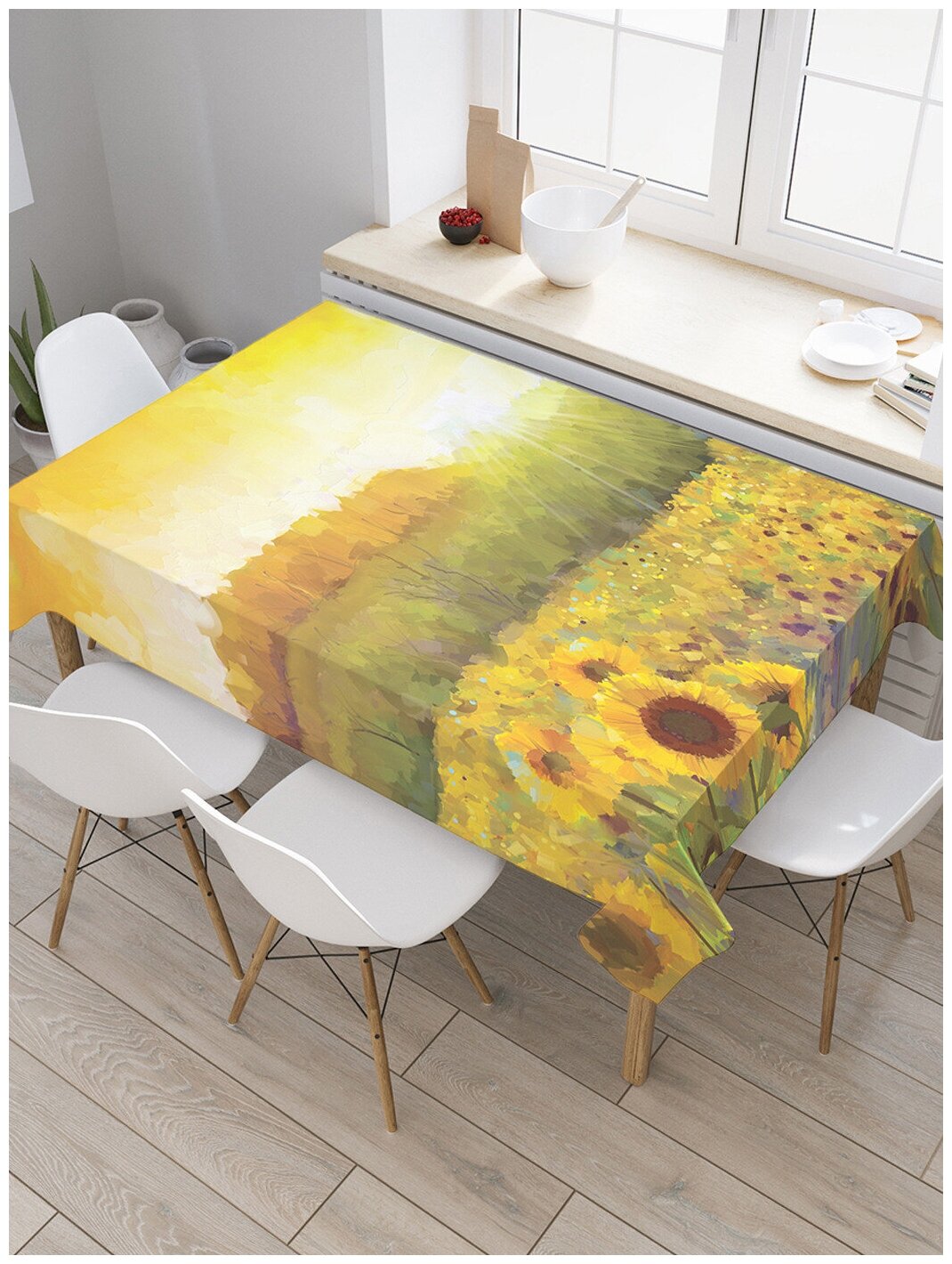 Скатерть прямоугольная JoyArty "Подсолнухи на рассвете" из сатена 180x145 см Скатерть прямоугольная из сатена Подсолнухи на рассвете 180x145