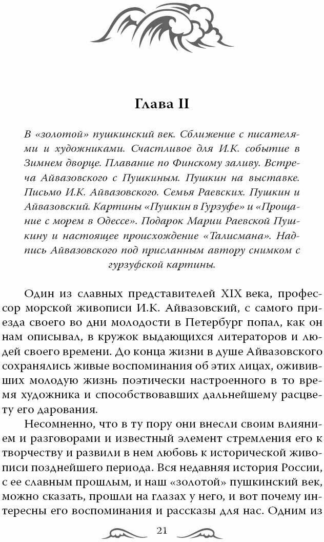 Желание увидеть картины этого художника и по сей день заставляет людей часами простаивать в очереди на выставки его работ. Морские пейзажи Айвазовского известны всему миру, но как они создавались? Что творилось в мастерской художника? Из чего складывалась повседневная жизнь легендарного мариниста? Обо всем этом вам расскажет книга воспоминаний друга и первого биографа И. Айвазовского.
