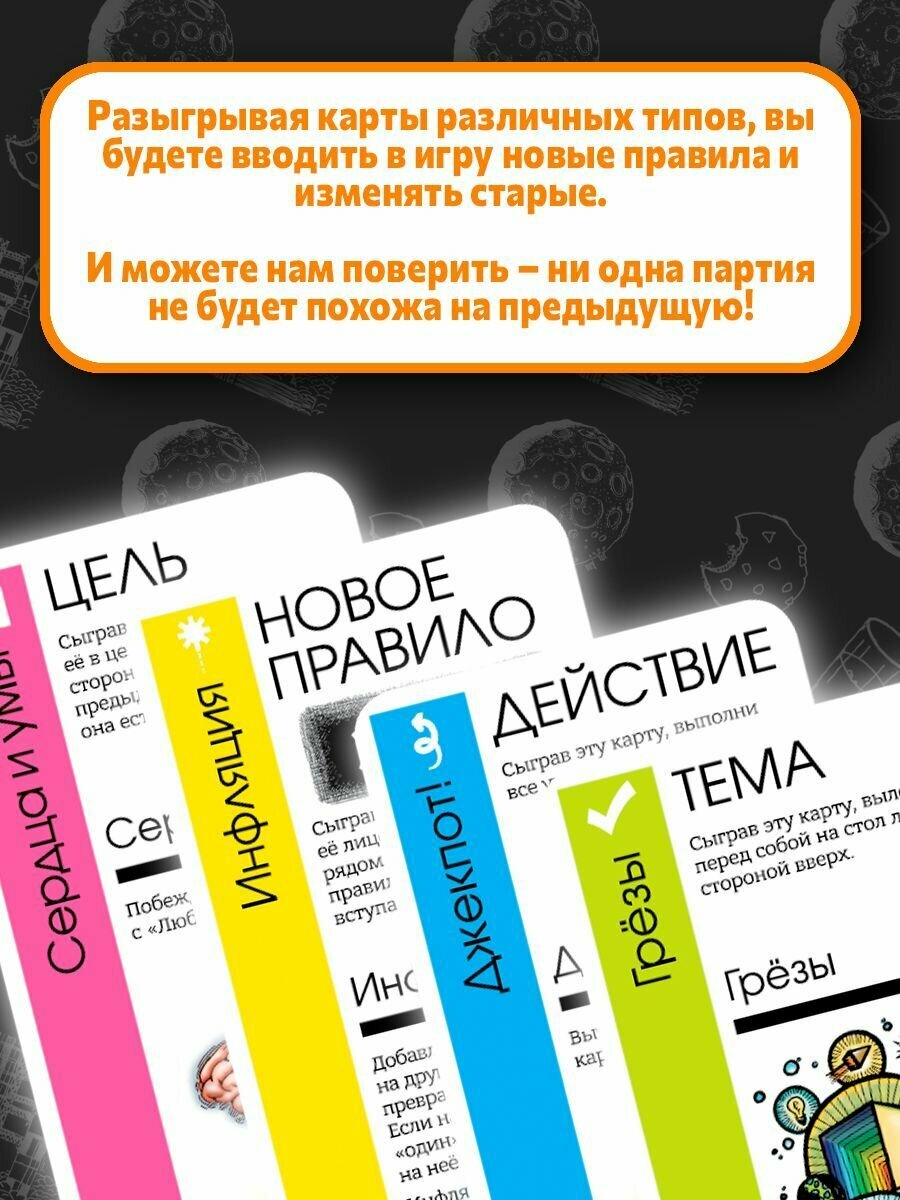 Цели игроков постоянно меняются в ходе игрового процесса благодаря картам, которые вводят новые и отменяют старые правила.