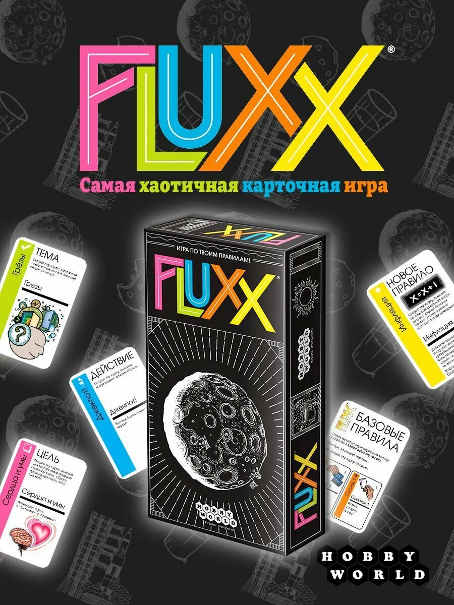 Научиться играть во Fluxx проще некуда: тяни карты, играй карты, а остальное схватишь на лету. Победить тебе помогут красивые глазки. Или подтаявшая шоколадка. А может, молоко с печеньками. Нельзя сказать заранее — правила игры постоянно меняются, главное — успеть крикнуть, что ты победил. Какова цель игры? Хлеб и зрелища или сердца и умы — решать игрокам.