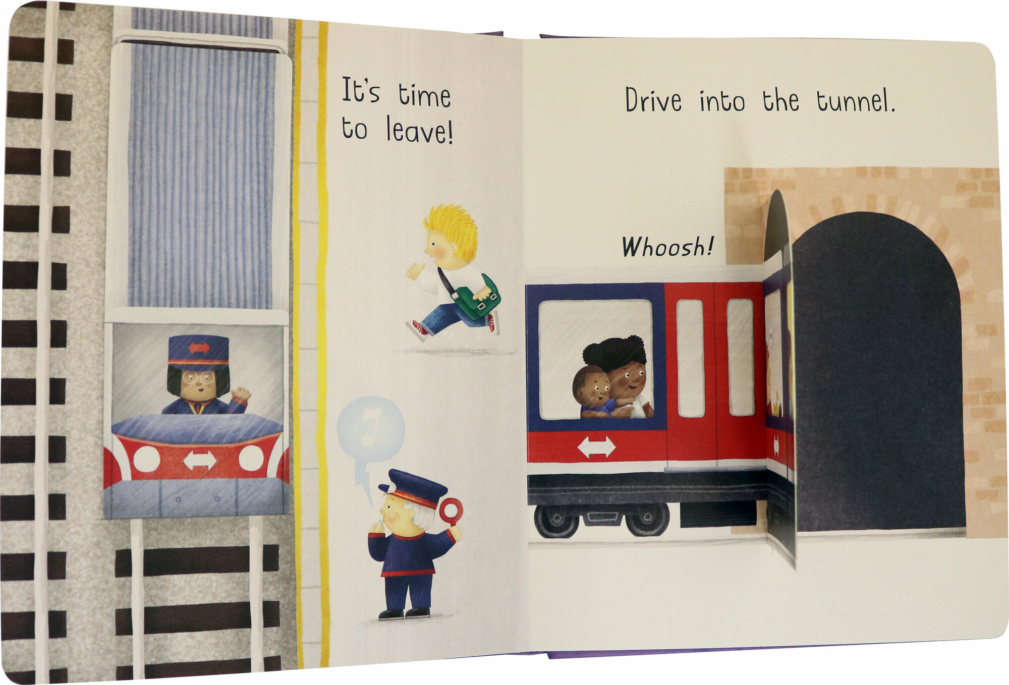 Toot toot! All aboard! Join in and use the flaps to help the busy train driver collect the passengers, change tracks, drive through the tunnel and much, much more. With interactive action-flaps, you can do it, too!