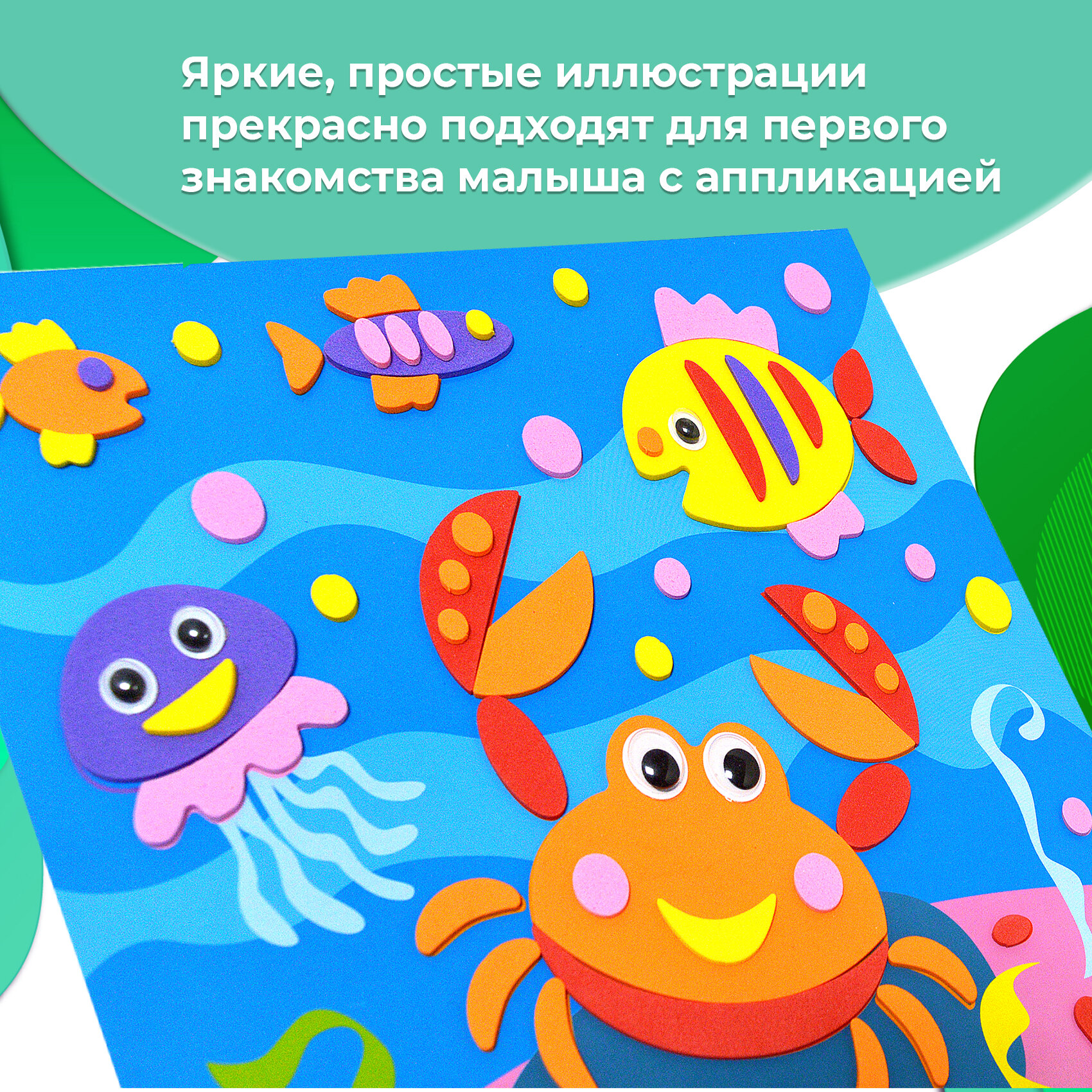 Яркие, простые иллюстрации прекрасно подходят для первого знакомства малыша с аппликацией.